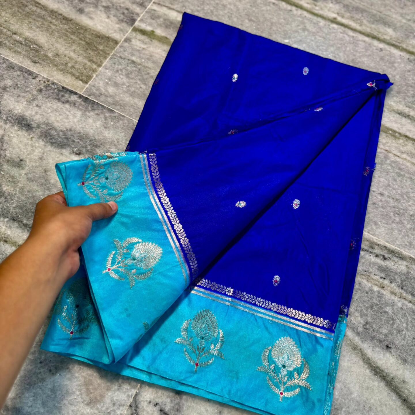 Zari woven butta all over.